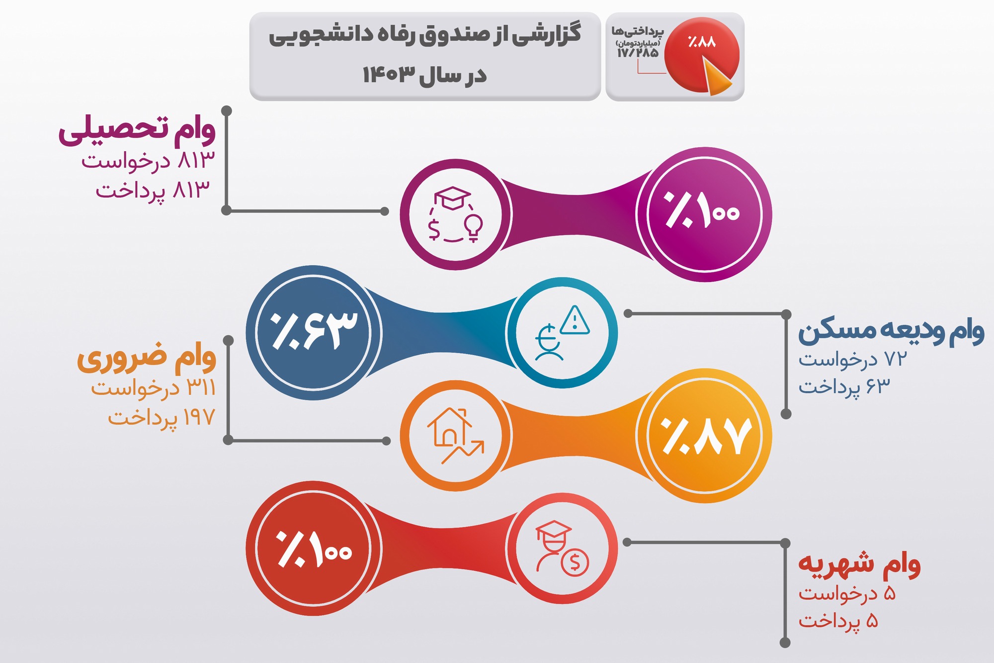 گزارش صندوق رفاه دانشجویی سال 1403 1404/08/14 - 12:29 - تعداد بازدید: 2 - تعداد بازدیدکننده: 2 - کد خبر : 5898 - گروه خبری : اینفوگرافی