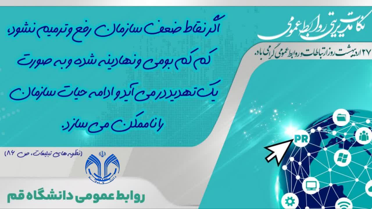 اگر نقاط ضعف سازمان رفع و ترمیم نشود، کم کم بومی و نهادینه شده و به صورت یک تهدید در میآید و ادامه حیات سازمان را ناممکن میسازد 1404/08/13 - 12:58 - تعداد بازدید: 5 - تعداد بازدیدکننده: 4 - کد خبر : 5866 - گروه خبری : پیام های روابط عمومی